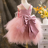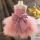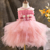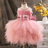 Elegant Baby Floral Beaded Mesh Puff Princess Dress Toddler Ball Gowns