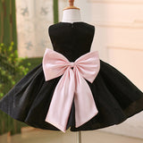 Elegant Baby Girls Black Sleeveless Bow Puff Birthday Dress Toddler Ball Gowns