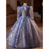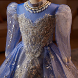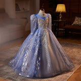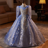 Elegant Baby Girls Blue Long Sleeve Embroidered Evening Dress ToddlerGirls Pageant Dresses