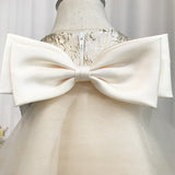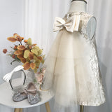 Elegant Baby Girls Champagne Sequin First Communion Dress Toddler New Year Mesh Princess Dress