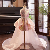 Elegant Baby Girls Sleeveless Sequin Trailing Princess Dress Toddler Pageant Dresses