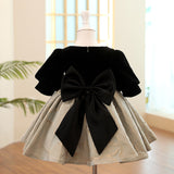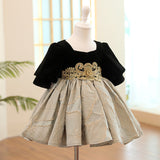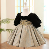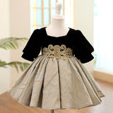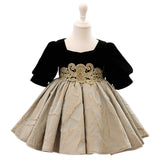 Elegant Baby Girls square round neck pattern belt puffy princess dress Toddler party dress