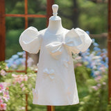 Elegant Baby Girls White Bow Flower Girl Dresses Toddler Birthday Dress