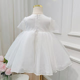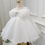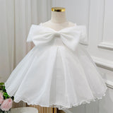 Elegant Baby Girls White Bow Mesh Princess Dress Toddler Ball Gowns