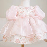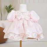 Elegant Baby Pink Puff Sleeve Princess Dresses for Girls Toddler Birthday Costume Princess Dress