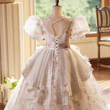 Elegant Baby Puff Sleeve Ball Dress Toddler Birthday Costume Princess Dress