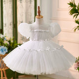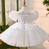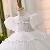 Elegant Baby White Puff Sleeve Flower Girl Dress Toddler Christening Dress