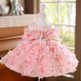 Pink Girl Birthday Party Princess Dress Flower Girl Wedding Puffy Dress