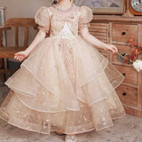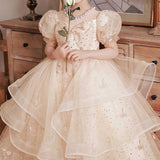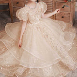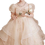 Cute Baby Girl Birthday Party Dress Beaded Bow Princess Dress