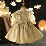 Toddler Ball Gowns Little Girl Flower Puff Sleeves Champagne Bow Princess Dress
