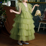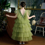 Toddler Prom Dress Girl Summer Green Backless Fluffy Birthday Party Princess Dress