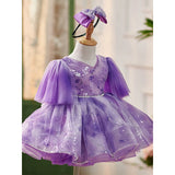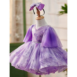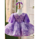 Toddler First Communion Dress Girl Purple Fluffy Sequins Princess Dress