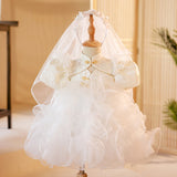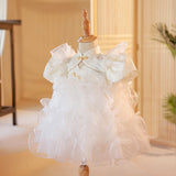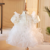 White Flower Girls Birthday Fluffy Party Wedding Princess Dress
