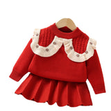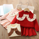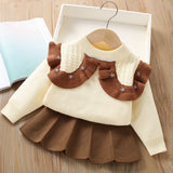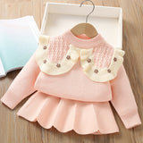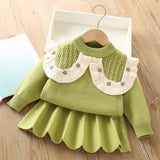 Fake Collar Flower Knitted Girls Sweater Two Piece Set