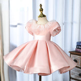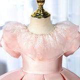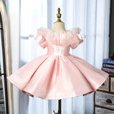 Elegant Baby Girls Pink Puff Sleeve Princess Dress Toddler First Communion Dress