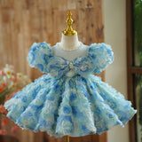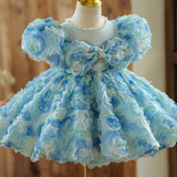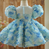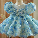 Girls Birthday Blue Rose Tutu Skirt Prom Dress