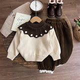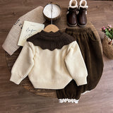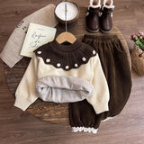 Girls' Thick Sweater with Children's Winter Pants Two-piece Set