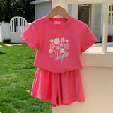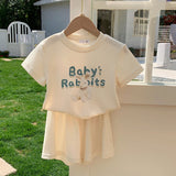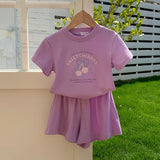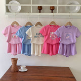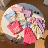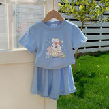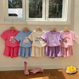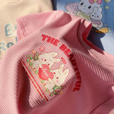 Girls' Waffle Cartoon Round Neck Pullover Sports Two-piece Suit