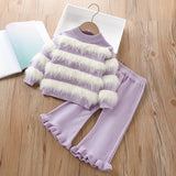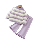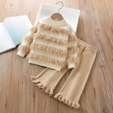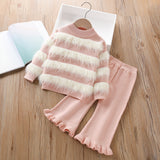 Girls' Wool Knitted Long-sleeved Pants Sweater Two-piece Suit