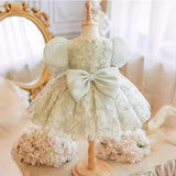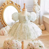 Green Fluffy Birthday Dress Baby Wedding Dress