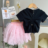 Love Heart T-shirt Mesh Skirt Two-piece Set
