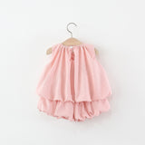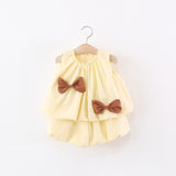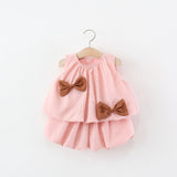Summer Girls Bowknot Sleeveless Top Bloomer Shorts Two-piece Set