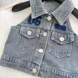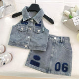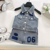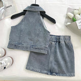 Summer Girls Soft Denim Vest Short Skirt Two-piece Set