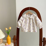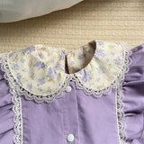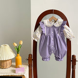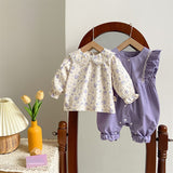 Sweet Baby Girl Floral Shirt Butterfly Sleeve Overalls Suit