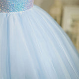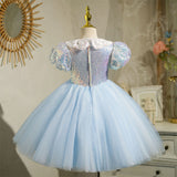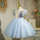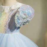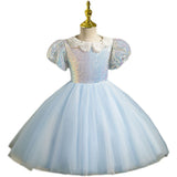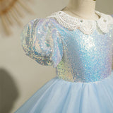Toddler Prom Dress Girl Birthday Party Dress Lace Collar Sequin Puff Sleeves Dress