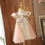 Flower Girl Dress Toddler Formal Pageant Communion Retro Print Princess Dress