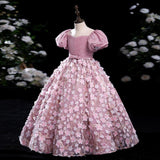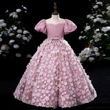 First Communion Dress Girl Pink Puffy Flower Pageant Princess Dresses Baby Girl Ball Gowns