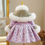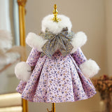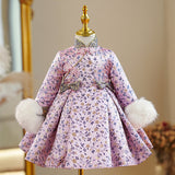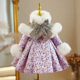 Baby Girl Party Dress Toddler Winter Plush Floral Long Sleeve Princess Dress