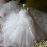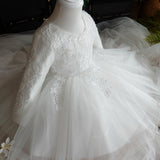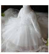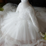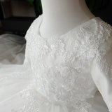 Girl First Communion Dress Childrenl White Round Neck Long Sleeve Fluffy Flower Girl Dress Baptism Dress