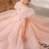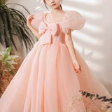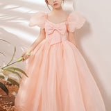 Flower Girl Dress Children Summer Birthday Party Dress Pink Puff Sleeve Bowknot Dress