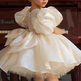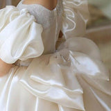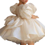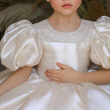First Communion Dress Girl Pageant Formal Dress Puff Sleeves Puffy Sequined Princess Dress