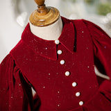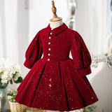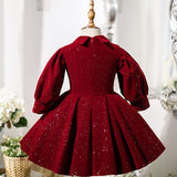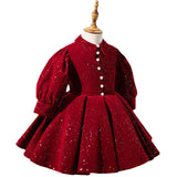 Baby Girl Dress Toddler Easter Birthday Party Dress Winter Red Long Sleeve Square Neck Sequined Princess Dress