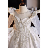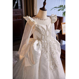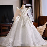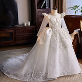 Flower Girl Dress Children Birthday Party Dress Beaded Trailing Baptism Dress
