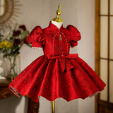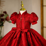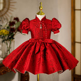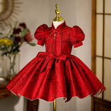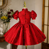 Girl Christmas Dress Little Girl Dress Toddler Retro Red Printed Stand Collar Formal Party Princess Dress