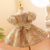 Baby Girl Formal Princess Dress Baby Girl Sequin Mesh Puffy Birthday Party Dress