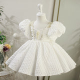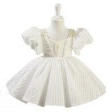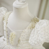 Toddler Prom Dress Girl Wedding Princess Dress White Puff Sleeve Beaded Baptism Dress