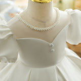 First Communion Dress Baby Girl White Textured Beaded Neck Puffy Christening Dress Toddler Prom Dress