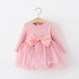Girls Autumn Beaded Bow Mesh Princess Dress