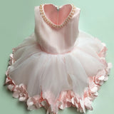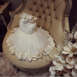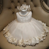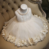 Toddler Baptism Dresses Baby Girl Beaded Round Neck Fluffy Flowers Girl Dress Princess Party Dress