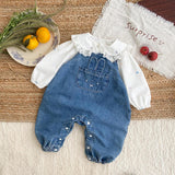 Baby Ruffled Top and Denim Overalls Two-Piece Set