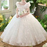 Girls White Birthday Princess Dress Children's Communion Dress Flower Girl Wedding Dress