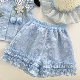 Girls Flying Sleeves Bowknot Babydoll Shirt Shorts Two-piece Set