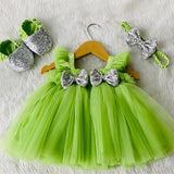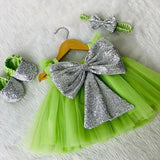 Cute Baby Girl Baptism Dress Toddler Bow Sequins First Birthday Princess Dress