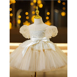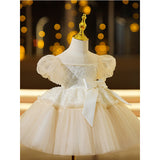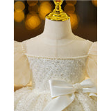 Flower Girl Dress Toddler Baptism Princess Puff Sleeve Beaded Mesh Fluffy Dress