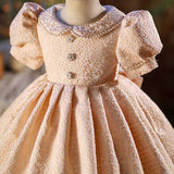 Flower Girl Dress Toddler Birthday Party Pageant Pattern Doll Collar Bowknot Puff Sleeves Dress