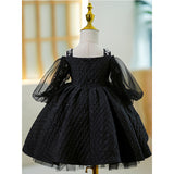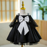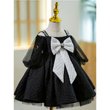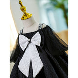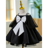 Little Girl Dress Toddler Black Summer Princess Bow Knot Fluffy Party Dress